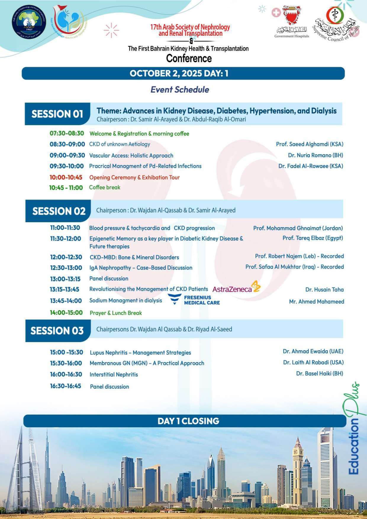 We extend our heartfelt gratitude to our distinguished speakers, valued partners, and all participants who have joined us in making this inaugural conference a success. Together, let us build a strong foundation for the future of nephrology in Bahrain.